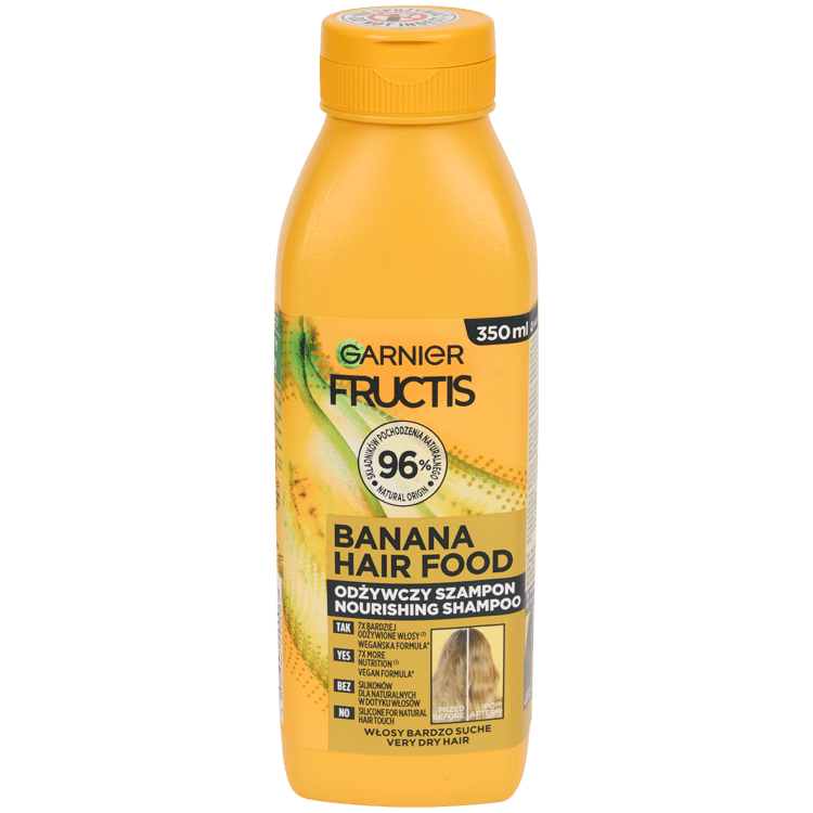 Szampon Garnier Fructis Banana Hair Food jest idealny do suchych włosów: odżywia je bez obciążania. Teraz Twoje włosy odzyskają swój blask!