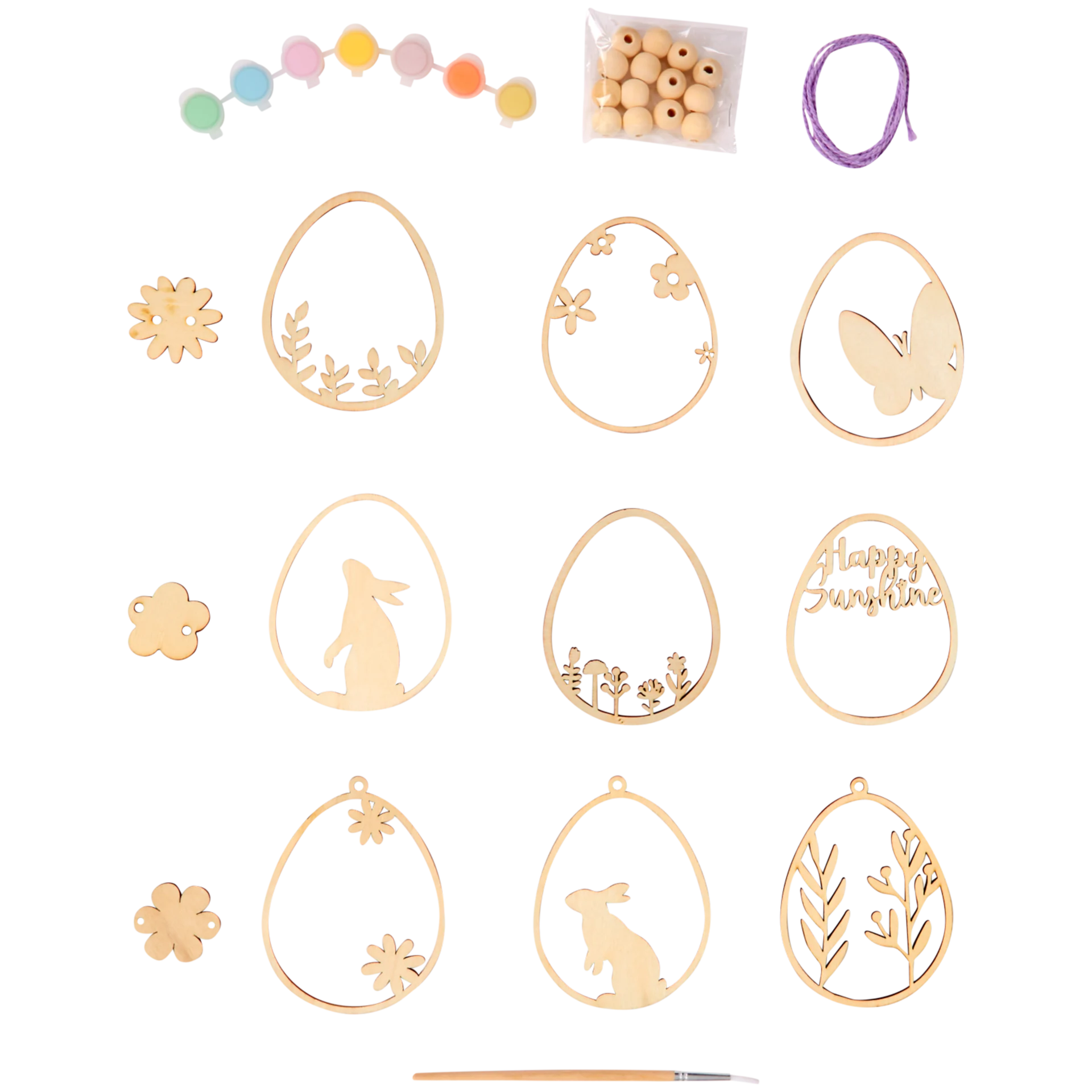 - Dřevěné velikonoční ozdoby: vajíčka, králíček a ptáček