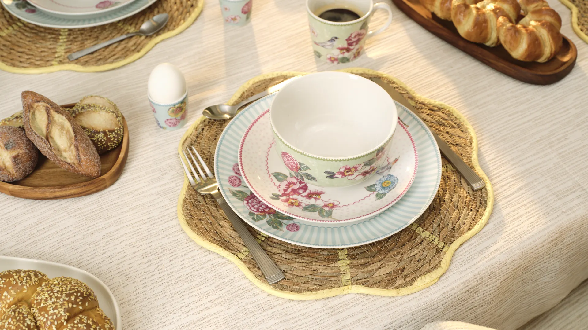 Mit einem schön gedeckten Tisch wird das Osterfrühstück zu etwas Besonderem! Bunte Eier, leckere Süßigkeiten und stilvolles Geschirr: Genieße das Beisammensein an Ostern zum allerbesten Preis!