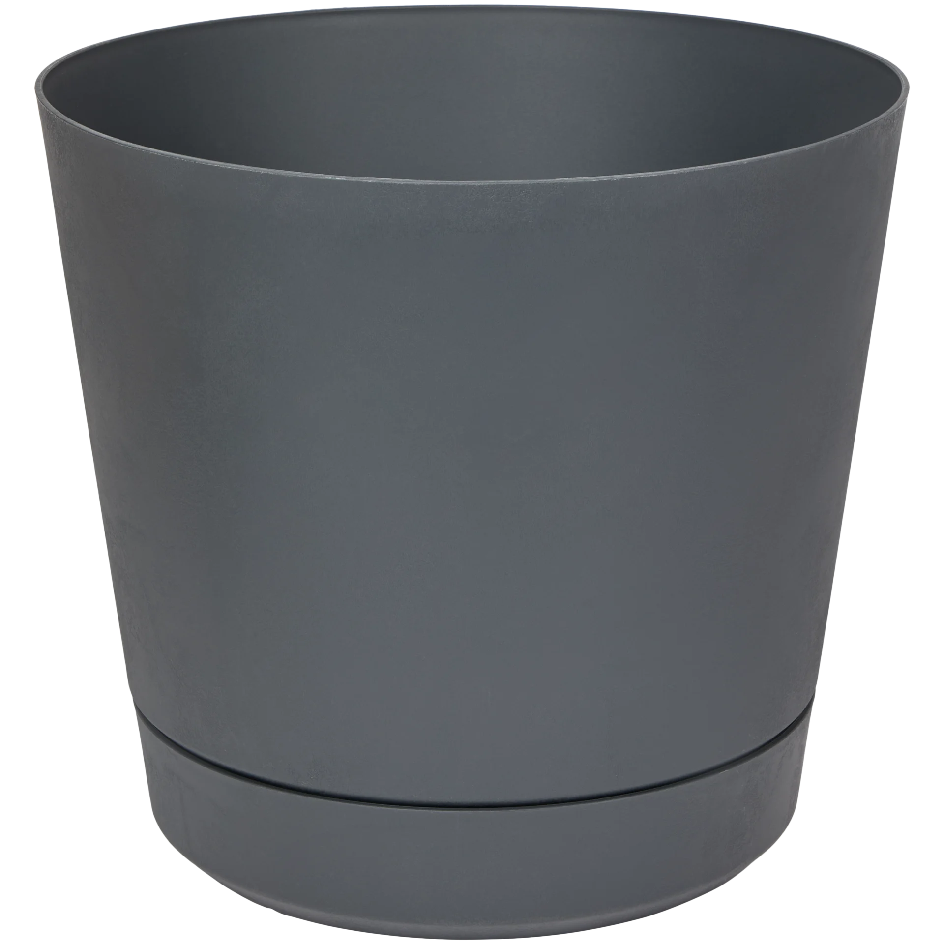 Soucoupe noire moderne à placer sous un pot de fleurs pour recueillir l'eau.