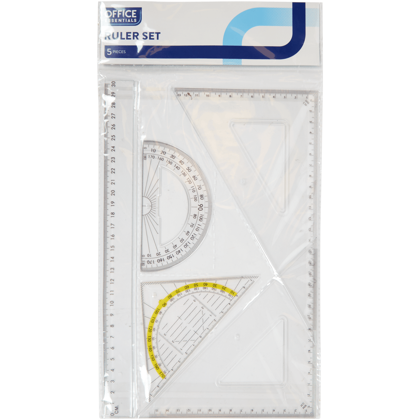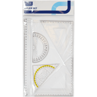 Complete set linialen voor het maken van sommen en het afmeten van afstanden, hoeken en graden.