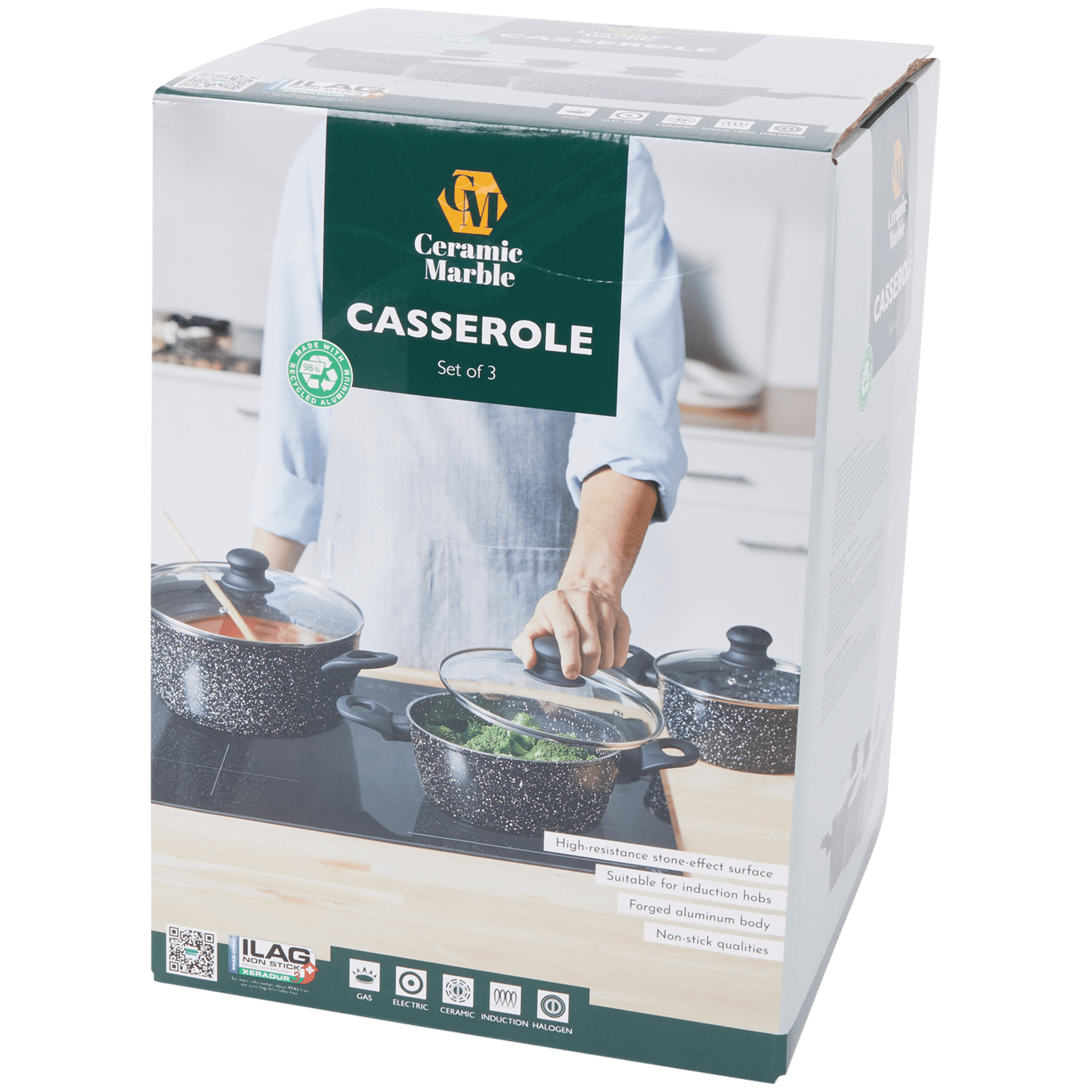 Ten zestaw 3 rondelków zapewni wiele wspaniałych chwil w kuchni. Wytrzymała powłoka nieprzywierająca zapobiega pozostawianiu resztek, a szklane pokrywy na wszystkich 3 rondlach pozwalają zawsze kontrolować proces gotowania. Ponadto te rondle nadają się do kuchenek indukcyjnych, dzięki czemu idealnie pasują do nowoczesnych kuchni.